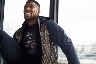 Anthony joshua hugo boss range. Instead 30 year old anthony joshua has passed his time cycling shadowboxing and co designing a collection for boss in midnight blue and gold. Joshua is known to take his sense of fashion as serious as he does his boxing. The colour that represents a win. This fall winter make your statement with an exclusive new capsule co created with anthony joshua.